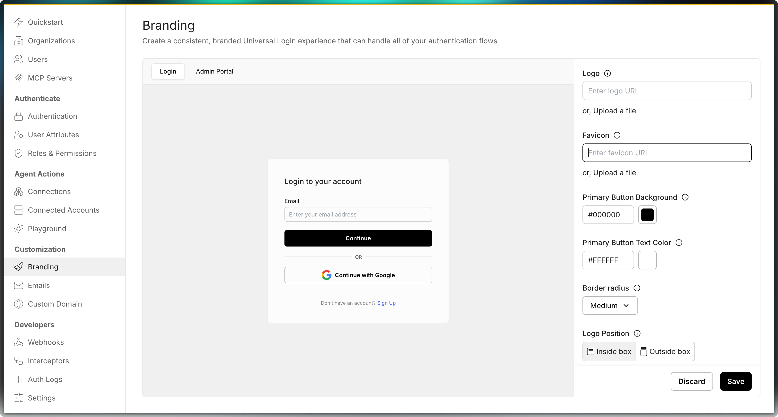Navigate to Customization > Branding in your Scalekit dashboard.